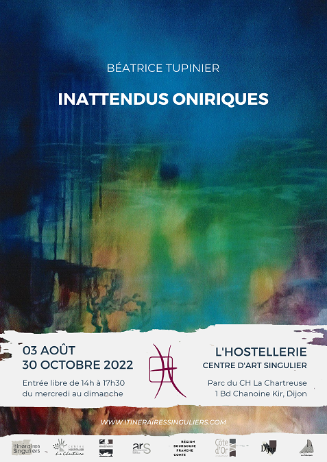 Exposition « Inattendus oniriques » : Dans sa peinture, Béatrice Tupinier construit et traverse des passerelles oniriques entre les rives de notre vie. Dans ses tableaux, le feu de la transformation, qui se traduit par un travail personnel, nous invite à comprendre et abandonner nos peurs, à relâcher l’étreinte fragile avec nous-même, à créer des courants d’air multicolores pour préserver le léger à travers la gravité de notre chemin.