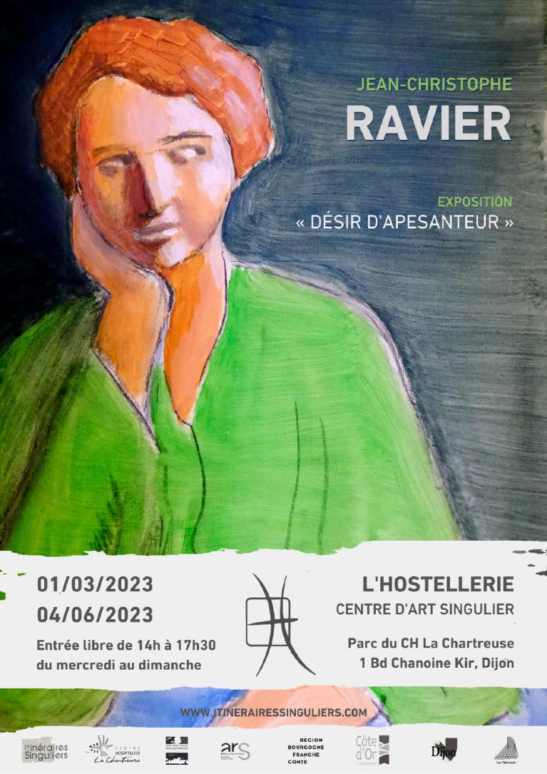 Jean-Christophe Ravier peint dans un geste respiratoire. Ce geste et cet outil créent alors un graphisme, un trait, un mouvement, une forme humaine sensible, sensuelle, comme en apesanteur au milieu du chaos de ses colorations intérieures.